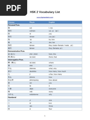 Weve tried to find patterns in the new HSK2 list and discovered that it has a lot of essential words that can help build the language base. This is the beginning of the HSK 2 vocabulary series. This is the complete new HSK 1 vocabulary list PDF file.