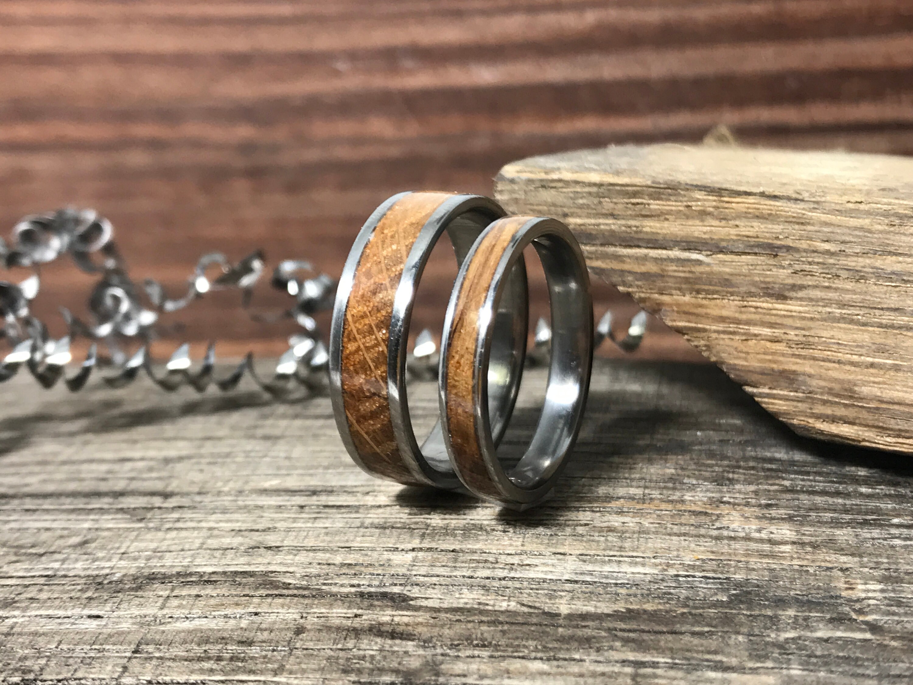 Whiskey Barrel Wood Rings Wedding Bands Set 5th Anniversary Gift Titanium Ring For Men Etsy De